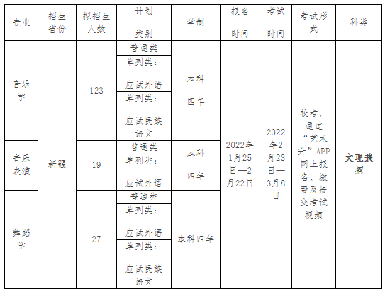 (二)符合自治区教育考试院规定的音乐类、舞蹈类专业报考及录取要求。